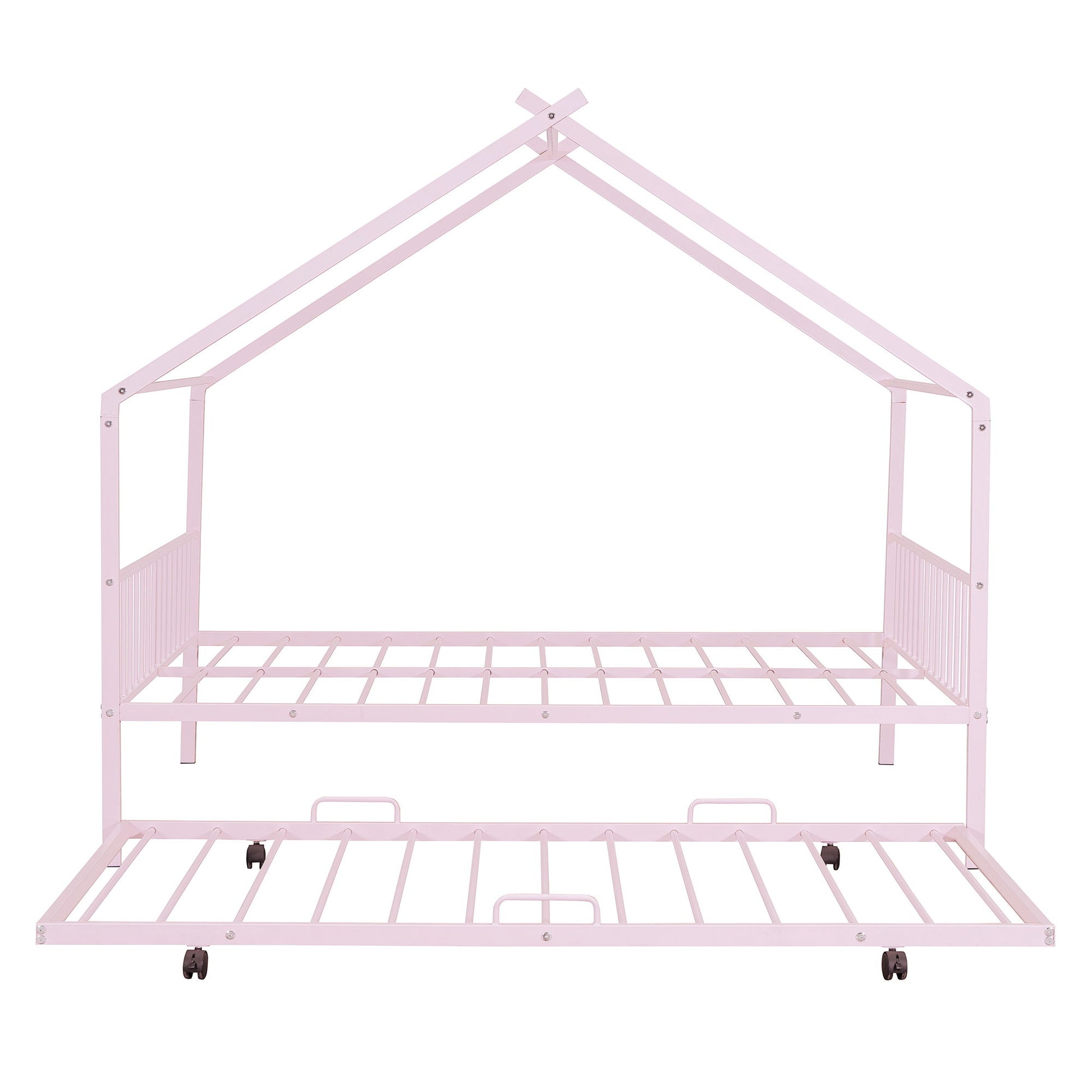 Twin Size House Bed With Twin Size Trundle - Pink