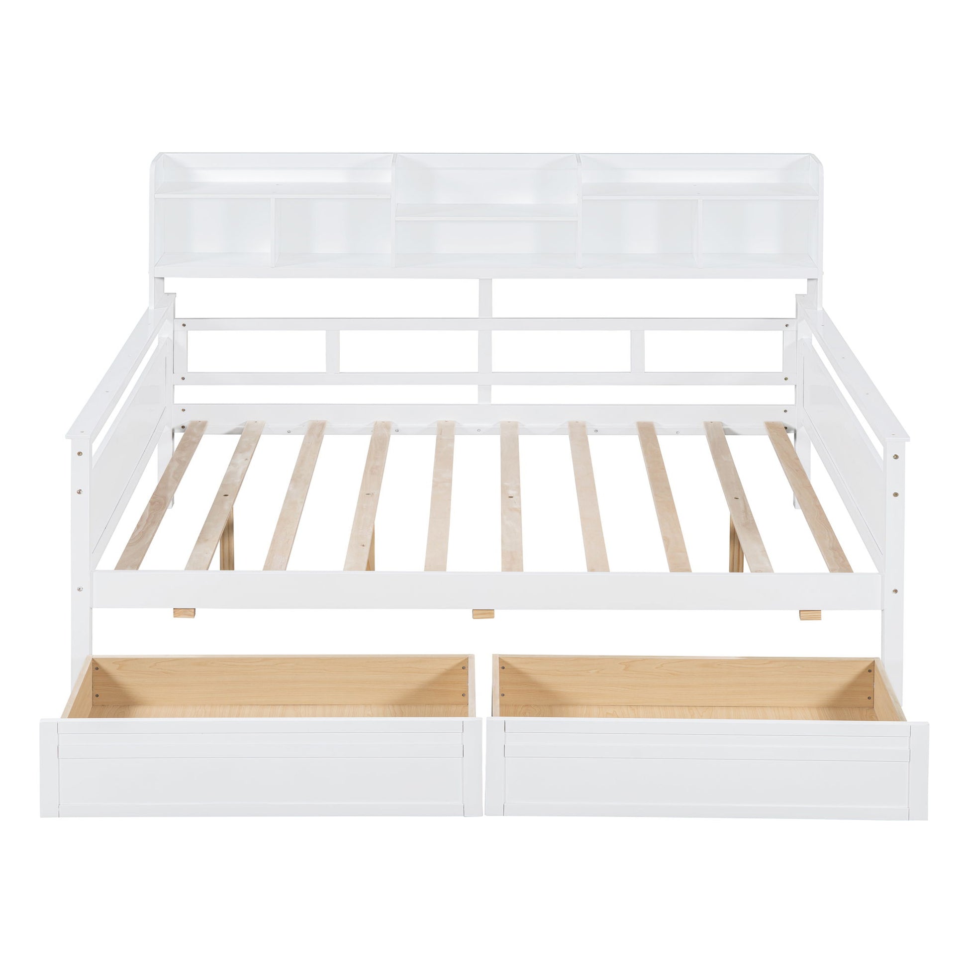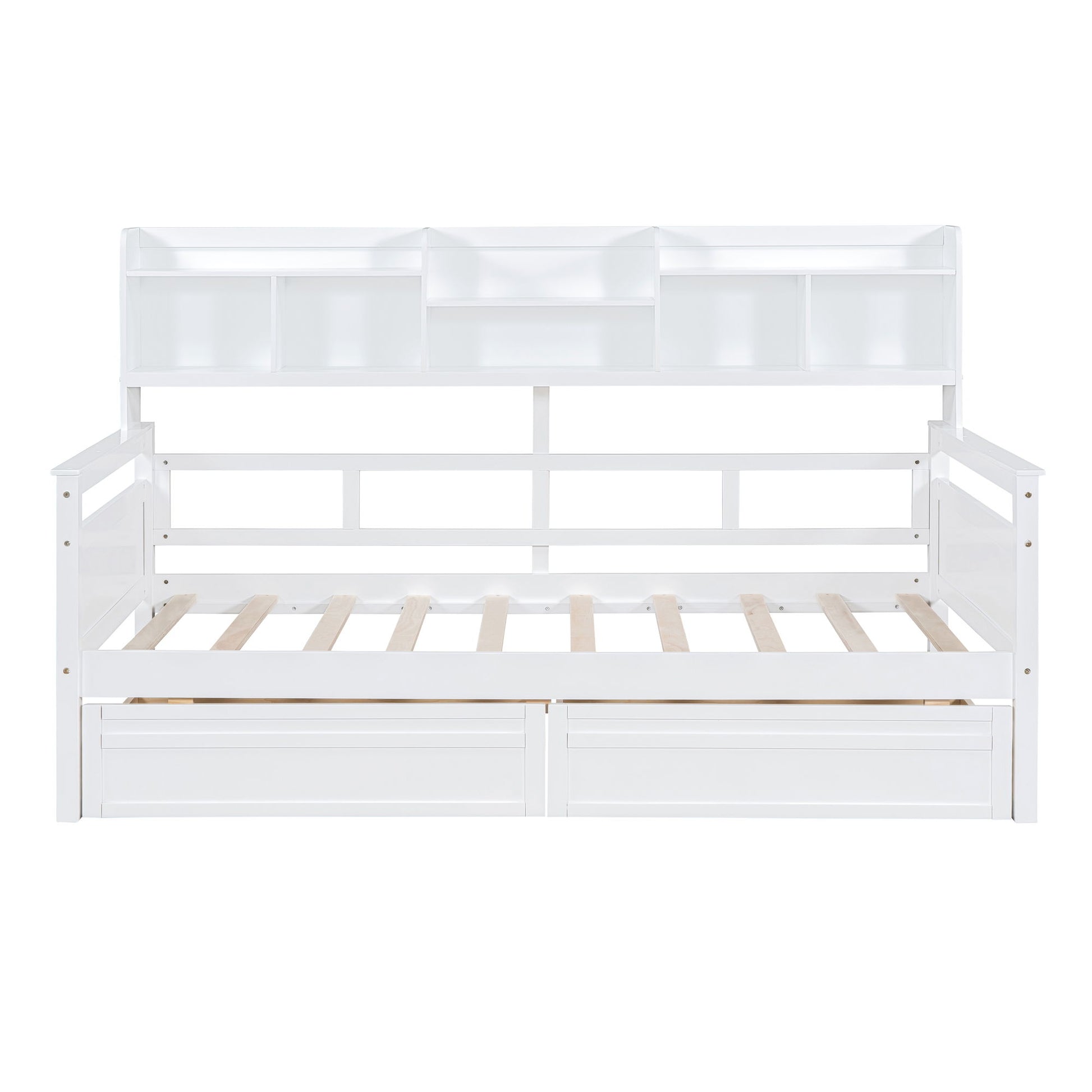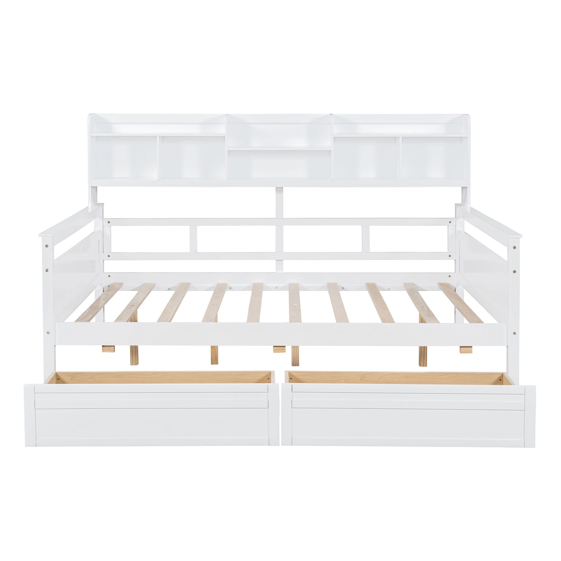 Daybed, Wood Slat Support, With Bedside Shelves And Two Drawers
