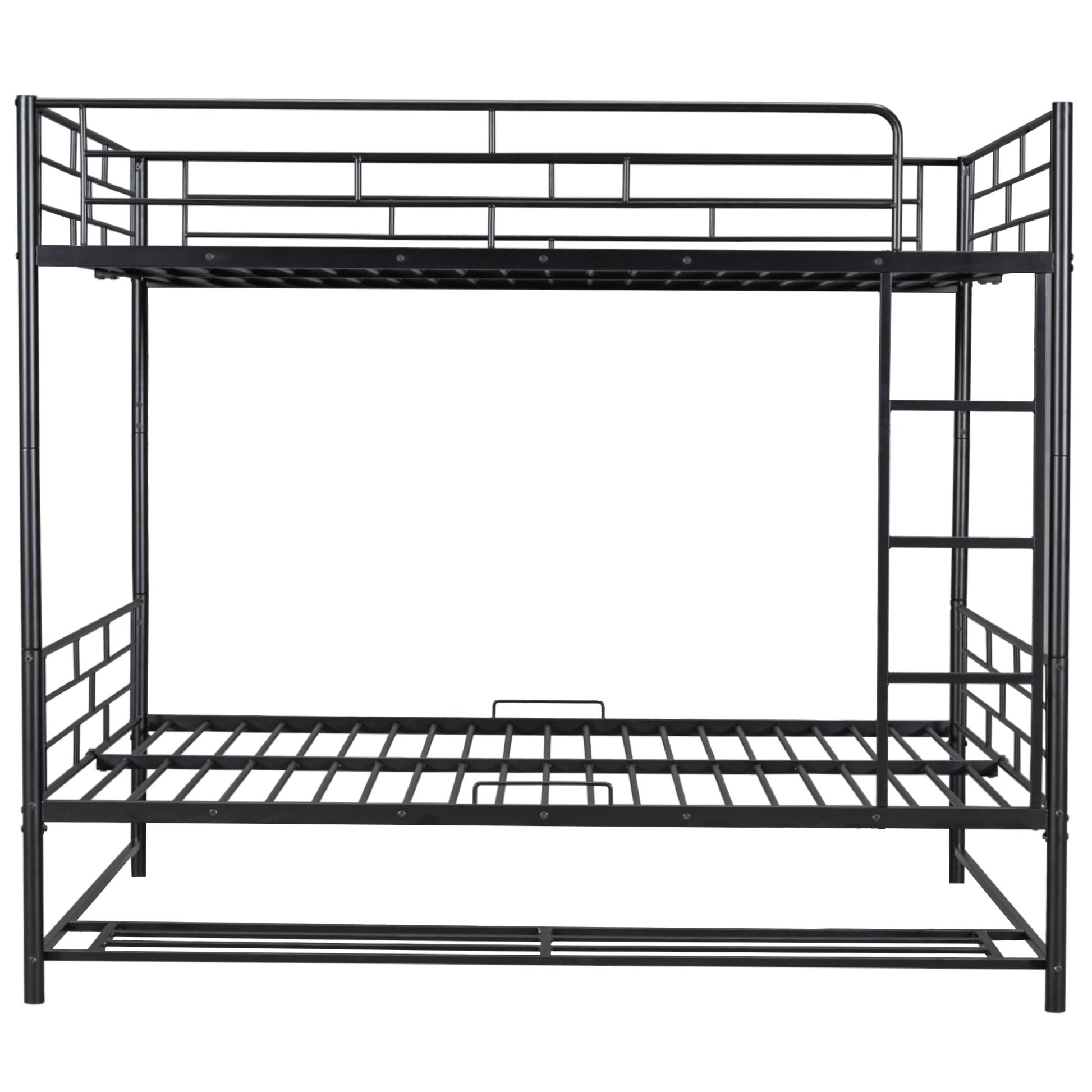 This metal bunk bed is made with sturdy metal and has a clean-cut silhouette that can be matched with any room decor. Designed with safety in mind, this bunk bed comes with a ladder integrated into the frame that is easy to climb up and down. With a practical design, this versatile bunk bed can be separated into two beds to meet your different needs.The shelf underneath the bunk bed creates extra space for you to stock shoes, boxes, toys or any small items you like. Some assembly is required, and the bed will definitely be assembled conveniently.