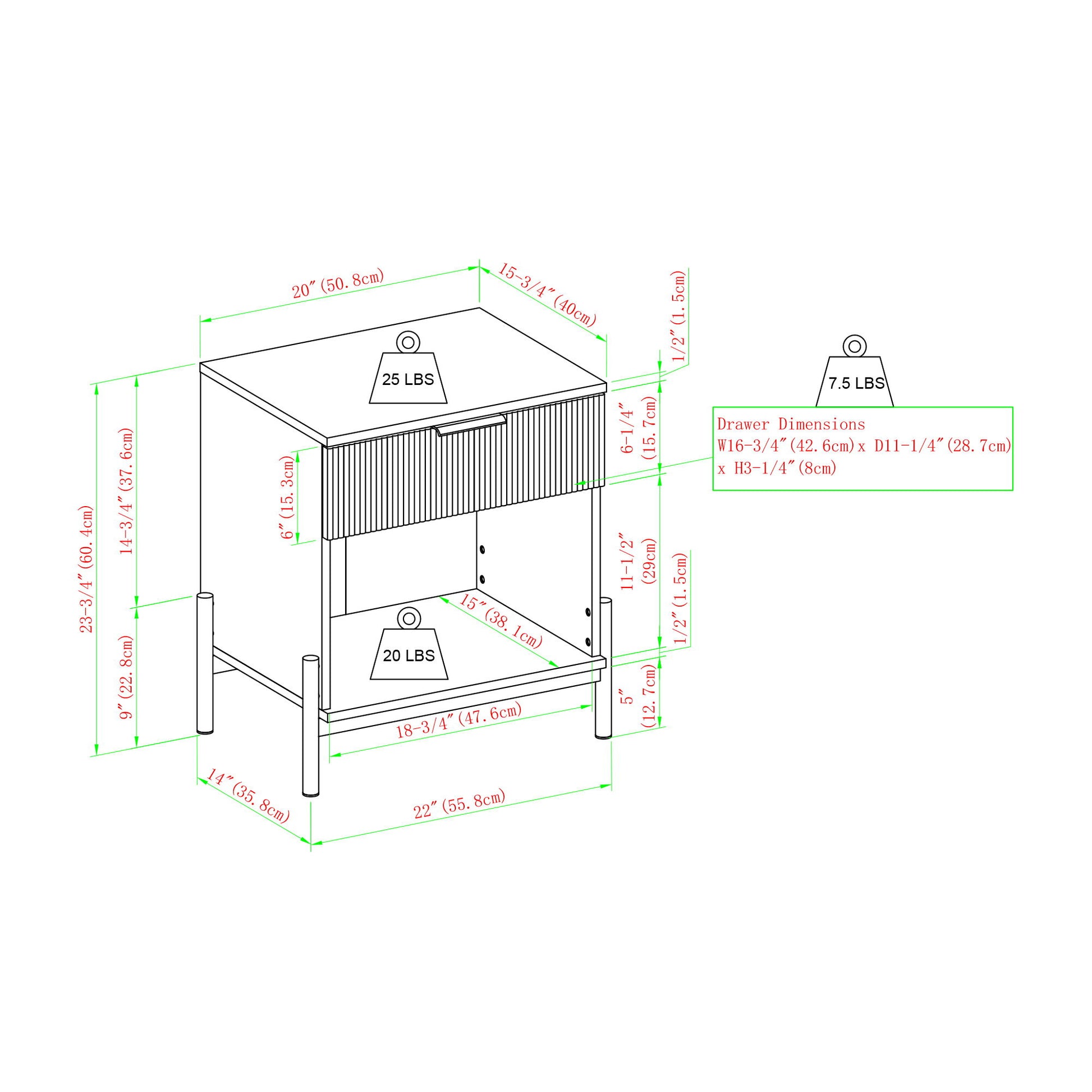 Modern Fluted Drawer Nightstand With Open Cubby Coastal