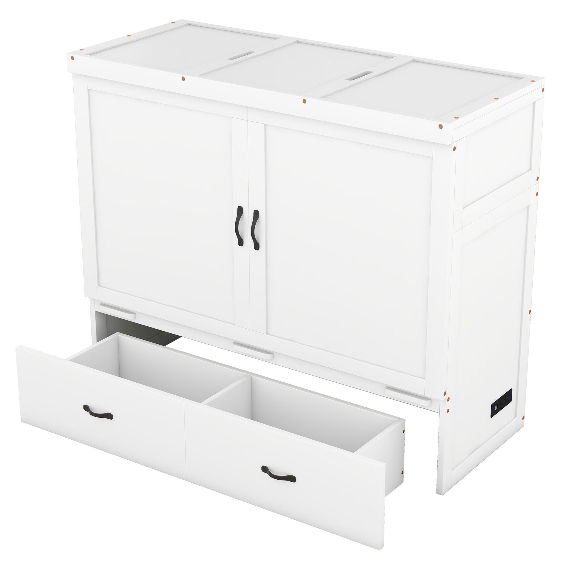 Full Size Murphy Bed With USB Port And A Large Drawer - White