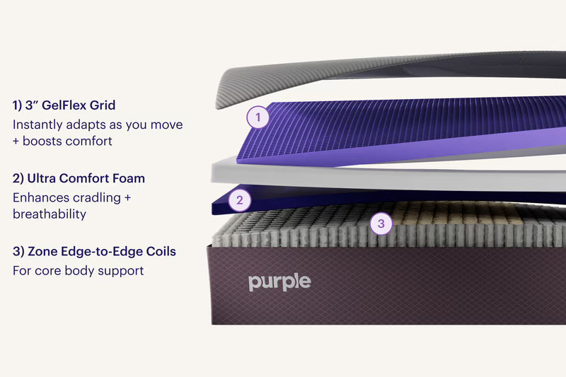 GelFlex® Grid immediatley flexes to support your position and springs back into place as you readjust and move overnight. The grid draws excess heat away, working with the coil core to help you sleep at the perfect tempreture. Responsive coil core combines with adaptive comfort foam layers and the grid for outstanding pressure releif. GelFlex® Grid and fortified edges work seamlessly with the edge-to-edge coils to provide amazing support. Built to last night after night through GelFlex Grid's flexible yet strong hyper-elastic polymer material, enhanced edge support and durable coil. Antimicrobial finish on the cover keeps the mattress fresh longer.