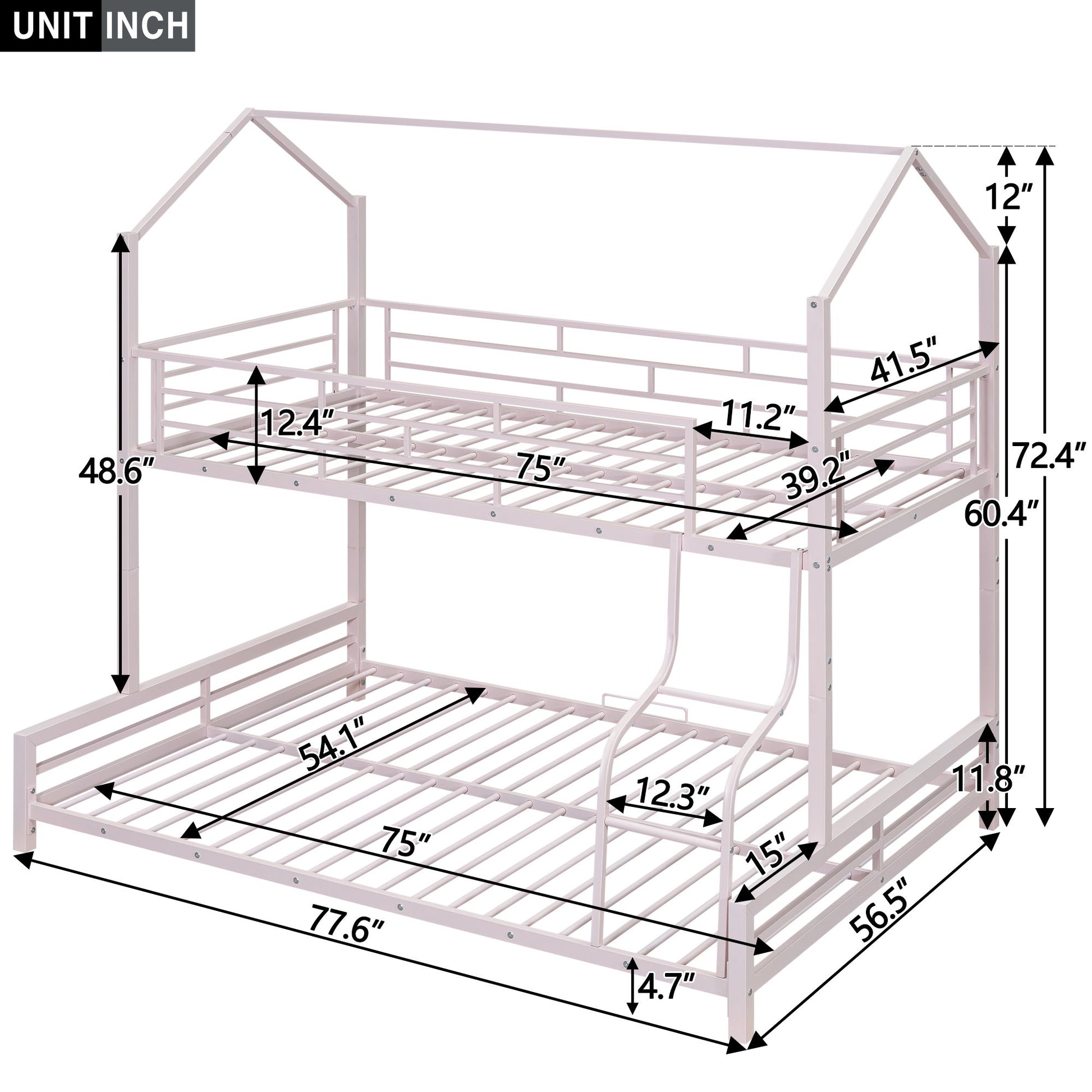 Twin Over Full Sturdy Frame Contemporary Metal House Bunk Bed - Pink