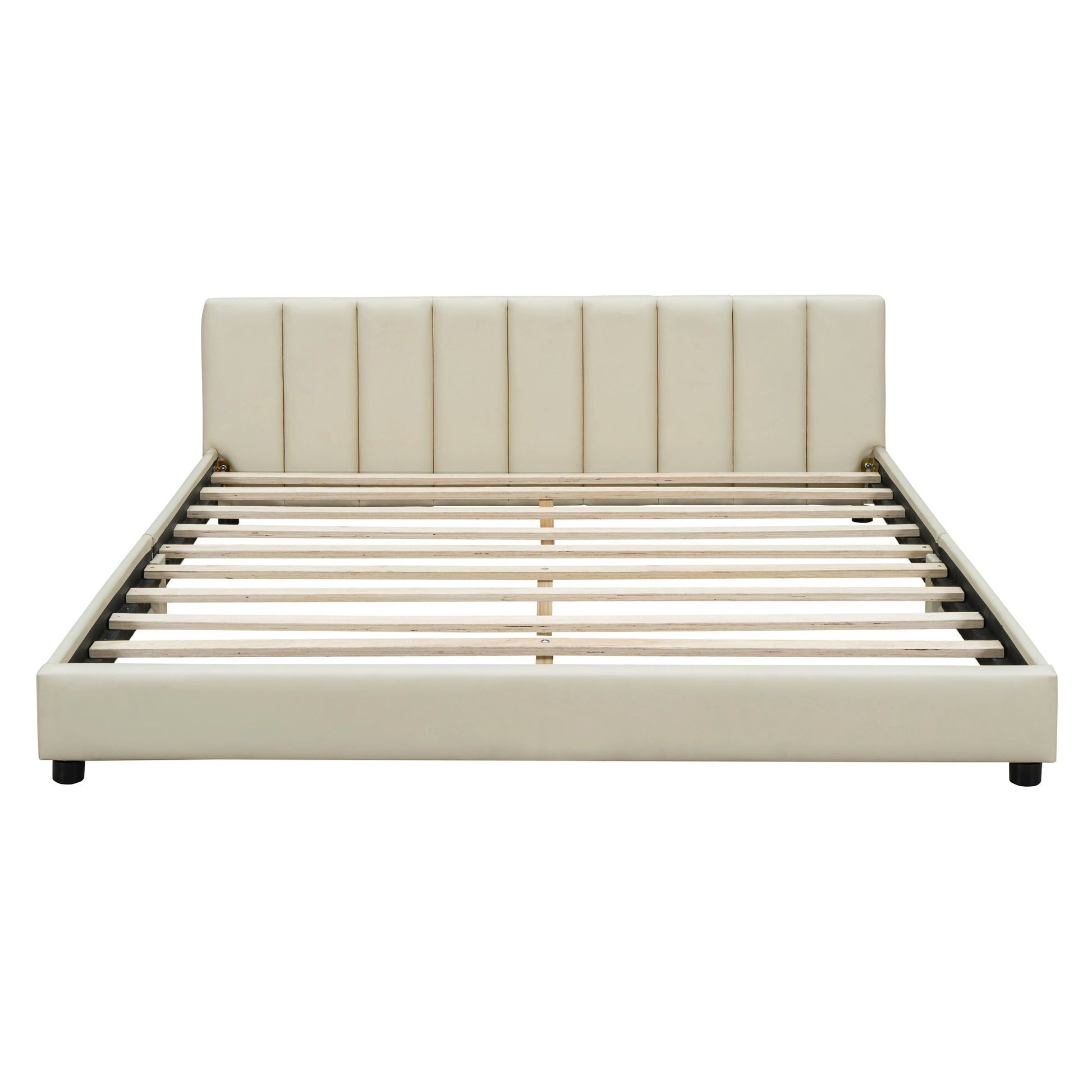 Queen & Twin Long Size Upholstered Platform Bed, Mother & Child Bed - Beige