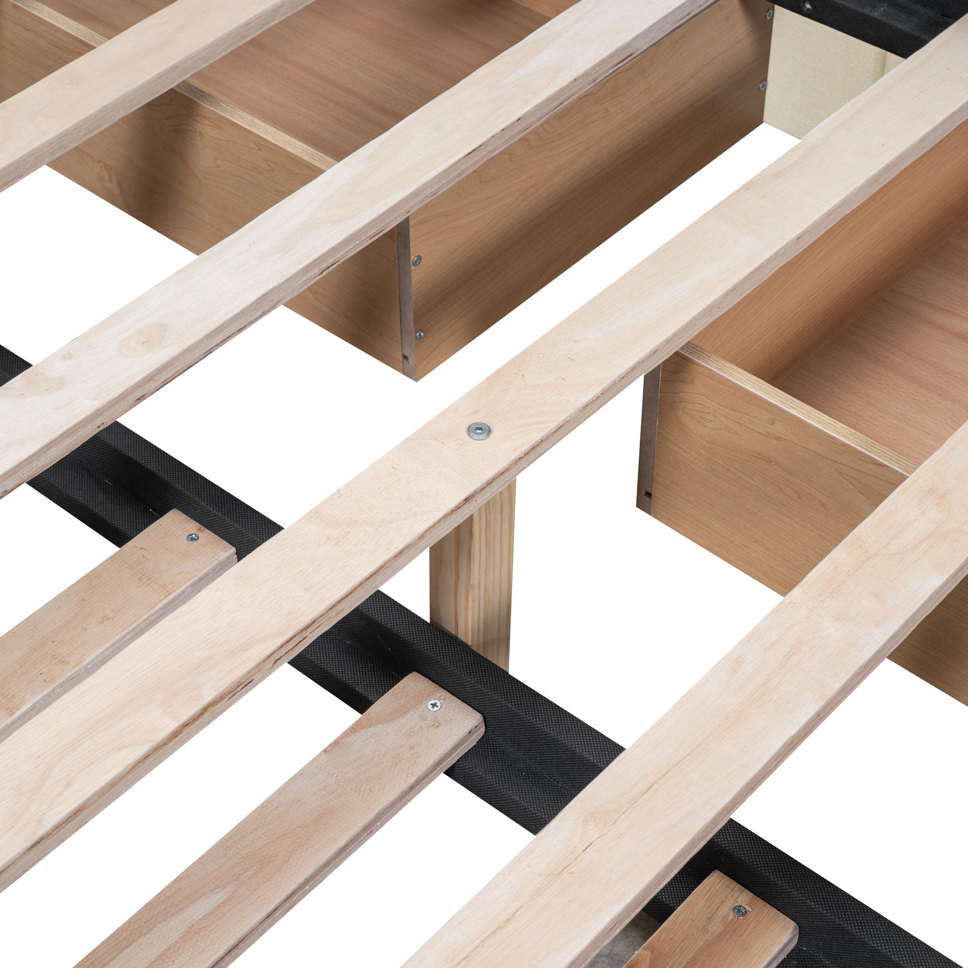 Queen Size Upholstered Platform Bed With Trundle And Drawers - Beige
